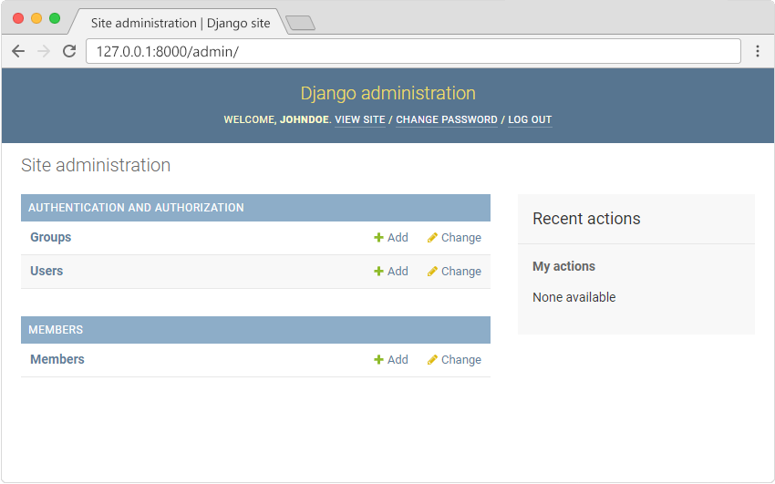 Now go back to the browser (127.0.0.1:8000/admin/) and you should get this result: