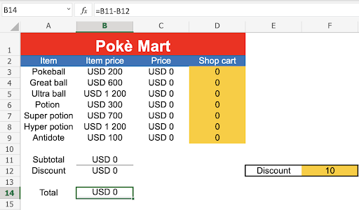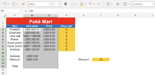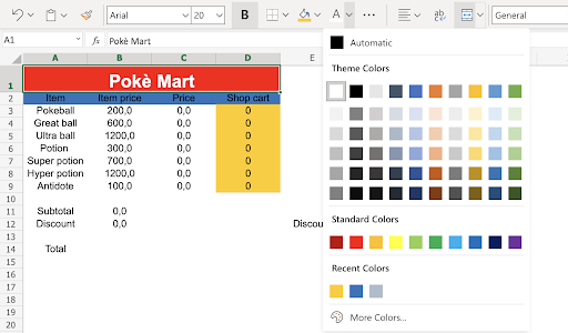Note: Coloring the input fields can be helpful for those who will use the spreadsheet. In this case we marked the input fields with the yellow color: ffcb05.