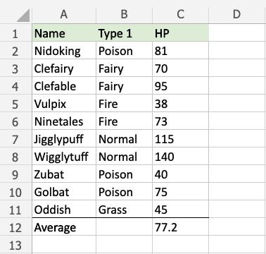 Note: The Average value row is separated from the data with a visual border. Check out how to add this in the format borders chapter.