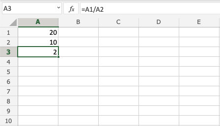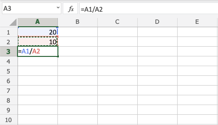 Let's have a look at an example where we divide B(5) with the range A1:A10 using absolute reference and fill function.