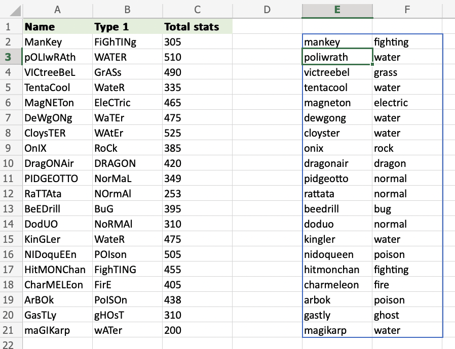 Changing the letter case of your cell values can be great when there is a lot of case inconsistency among the cell inputs or when preparing your dataset for case-sensitive usage.