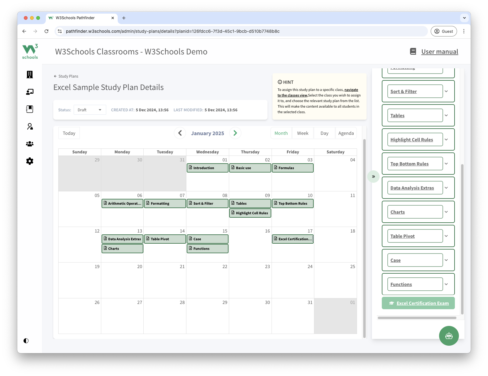 Save time with pre-built teacher materials and study plans. Easily organize your class with a timeline from the introduction of Excel to the final exam.