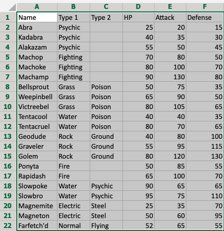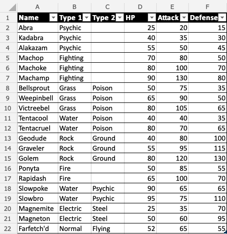 Good job! The range A1:F22 was successfully converted from range to table.