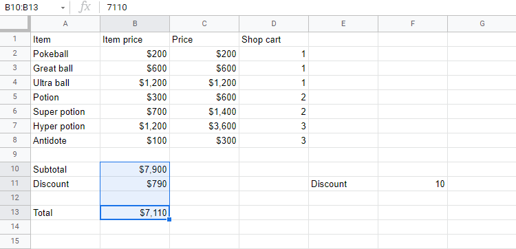 Now, do the same for cells B10, B11 and B13: