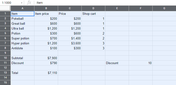 In the example we have cells that represent prices, which can be formatted as Currency.