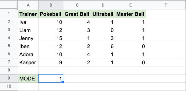 B2:E7for all the different types of Pokeballs - Hit enter