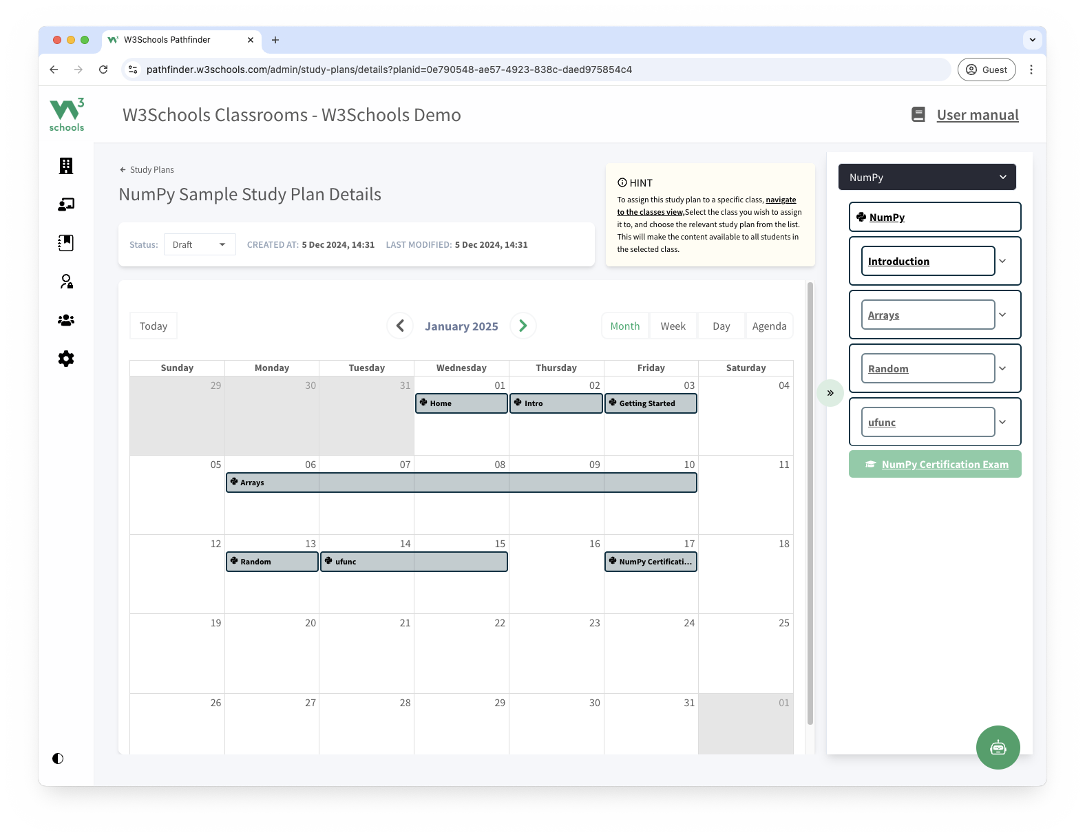 This study plan is a feature of W3Schools Academy.