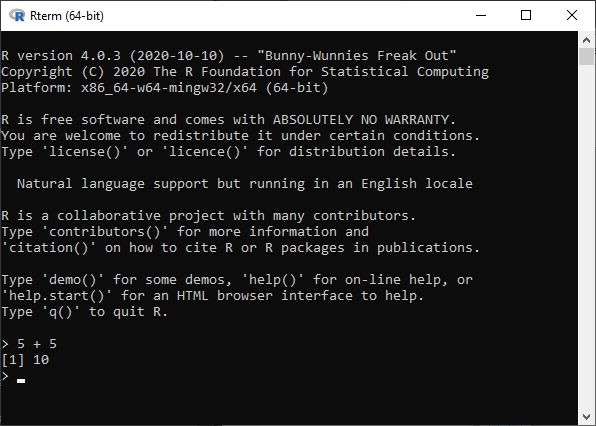 If you type 5 + 5, and press enter, you will see that R outputs 10.